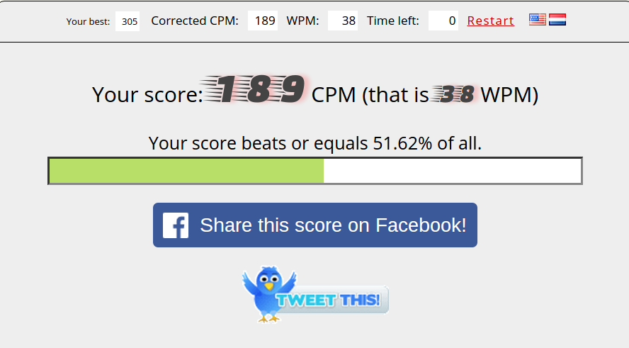 Today I did my typing and I got the same result as Monday it was 38 WPM and I am going to try to type 40 WPM.